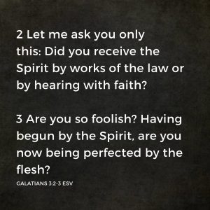 Are you so foolish? Having begun by the Spirit are you now being perfected by the your works (flesh)?