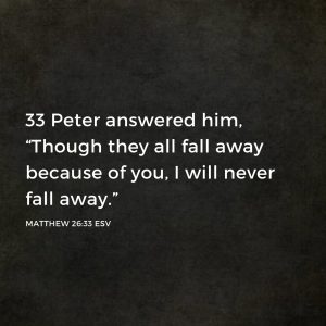 Look at Peter’s confidence. Peter answered him, “Though they all fall away because of you, I will never fall away.”